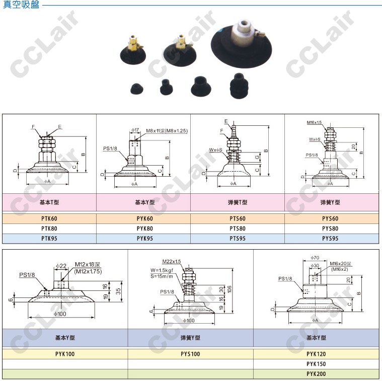 PYK60,PYK80,PYK95,PYK100,PYK120,PYK150,PYK200,國鷹KUOIN真空吸盤 |