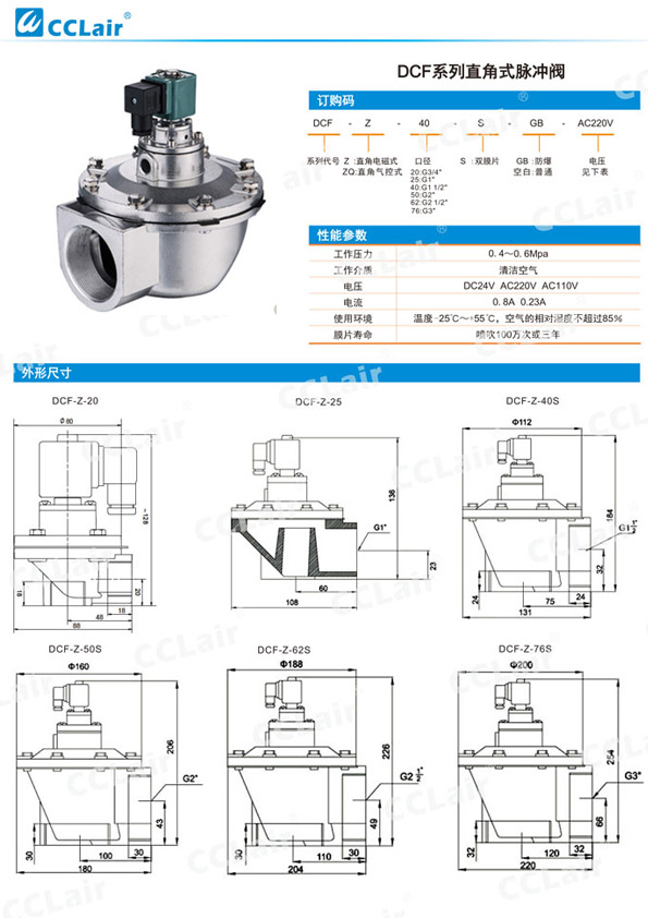 DCF-Z-20,DCF-Z-25,DCF-Z-40S,DCF-Z-50S,DCF-Z-62S,DCF-Z-76S,直角式脈沖閥