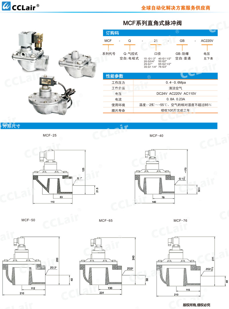 MCF-Q-15,MCF-Q-20,MCF-Q-25,MCF-Q-35,MCF-Q-40,MCF-Q-50,MCF-Q-62,MCF-Q-76,氣控脈沖閥