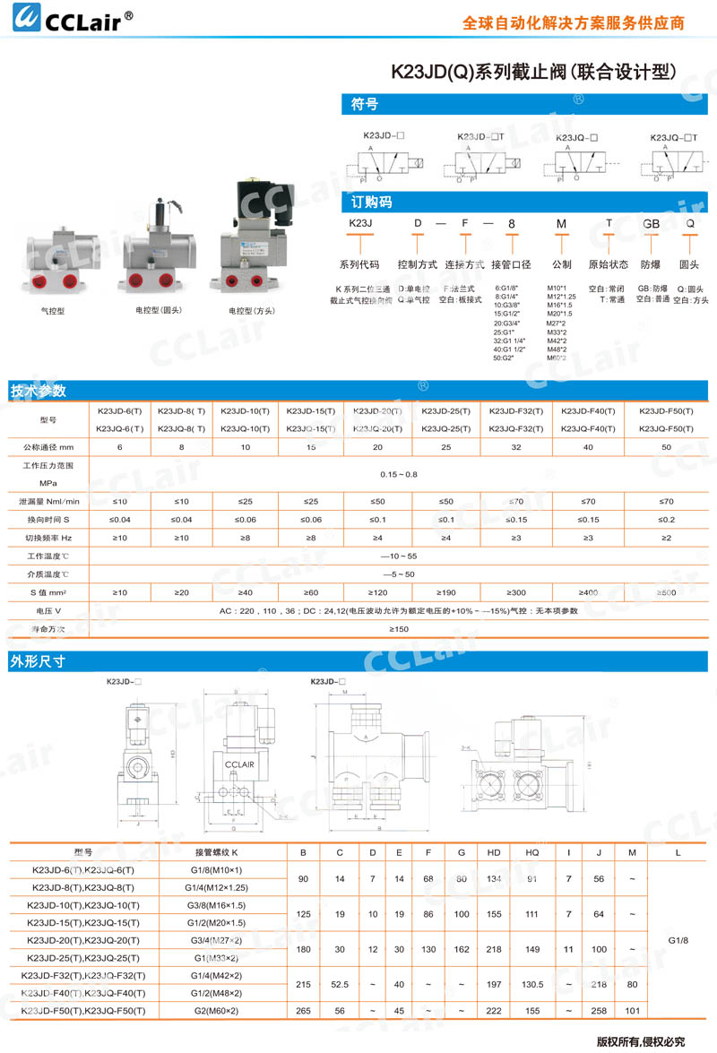 K23JD-6,K23JD-8,K23JD-10,K23JQ-15,K23JQ-20,K23JQ-20T,K23JQ-25,K23JD-F40,K23JQ-F50T,二位三通截止式氣控?fù)Q向閥