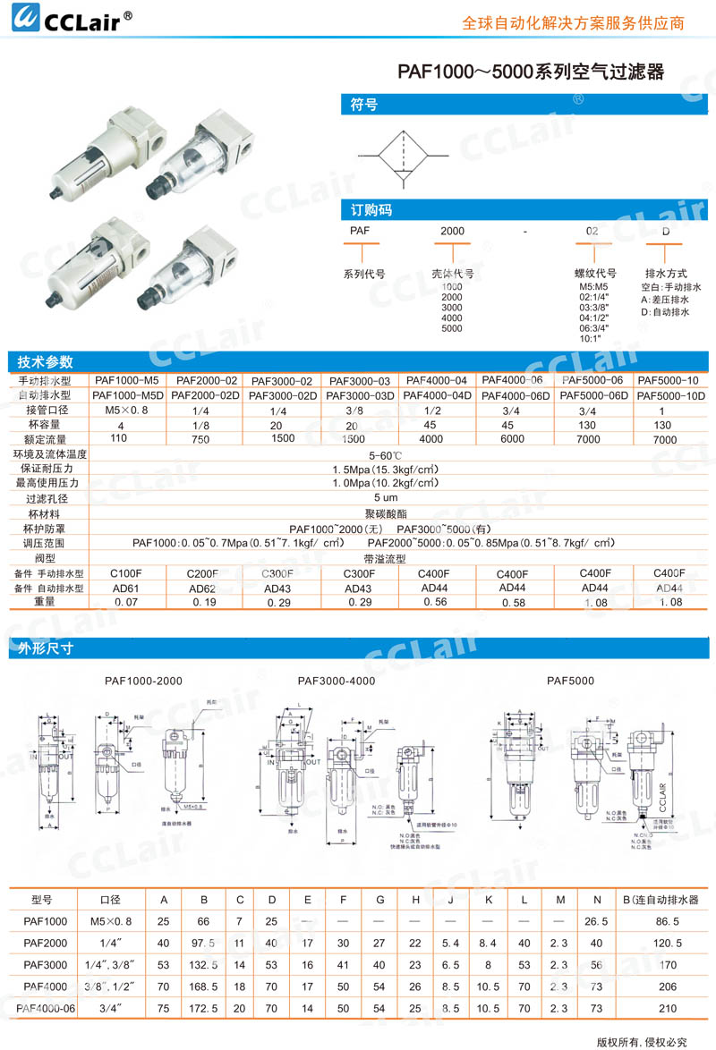 PAF1000-M5,PAF2000-02,PAF3000-03,CCLAIR PAF4000-04,PAF4000-06,PAF5000-06,PAF5000-10,