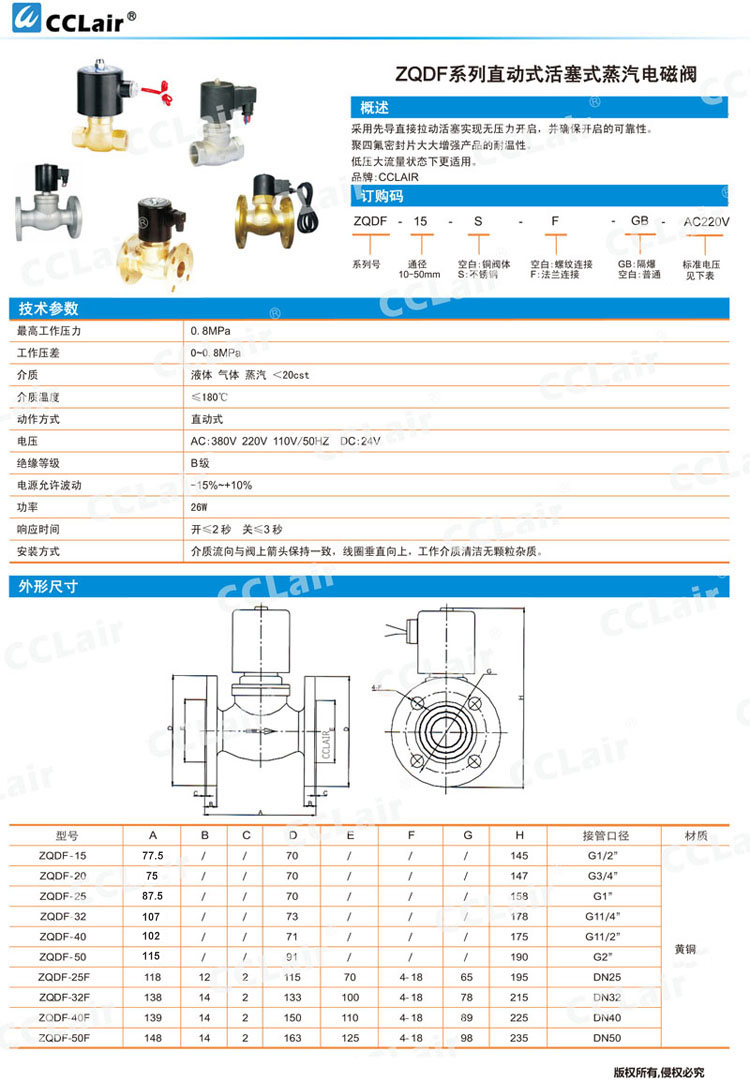 ZQDF-15,ZQDF-20,ZQDF-25,ZQDF-32,ZQDF-40,ZQDF-25F,ZQDF-32F,ZQDF-40F,ZQDF-50F,直動(dòng)式活塞式蒸汽電磁閥