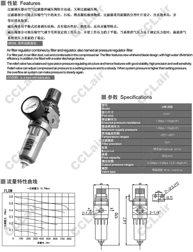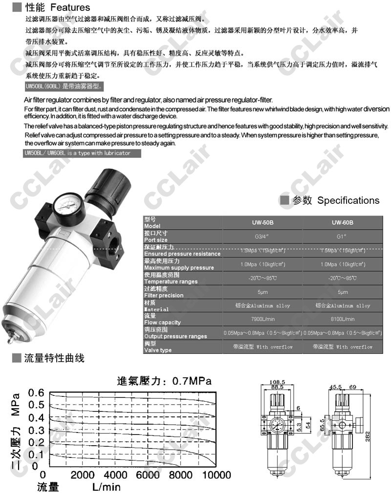 UNIWO,UW-20B,UW-30B,UW-40B,UW-50B,UW-60B,空氣過(guò)濾減壓閥
