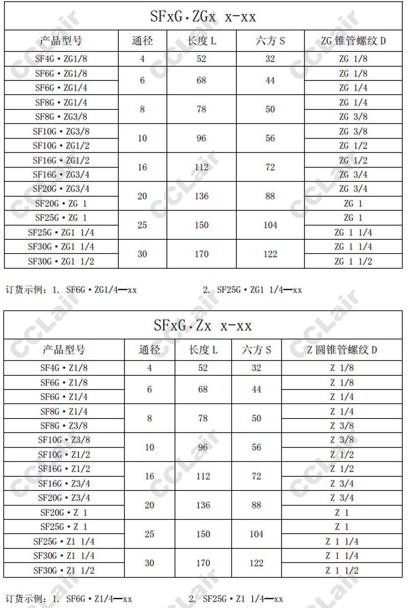 SF4G·ZG1/8,SF6G·ZG1/8,SF8G·ZG1/4,SF10G·ZG3/8,SF16G·ZG1/2,SF20G·ZG3/4,SF25G·ZG1