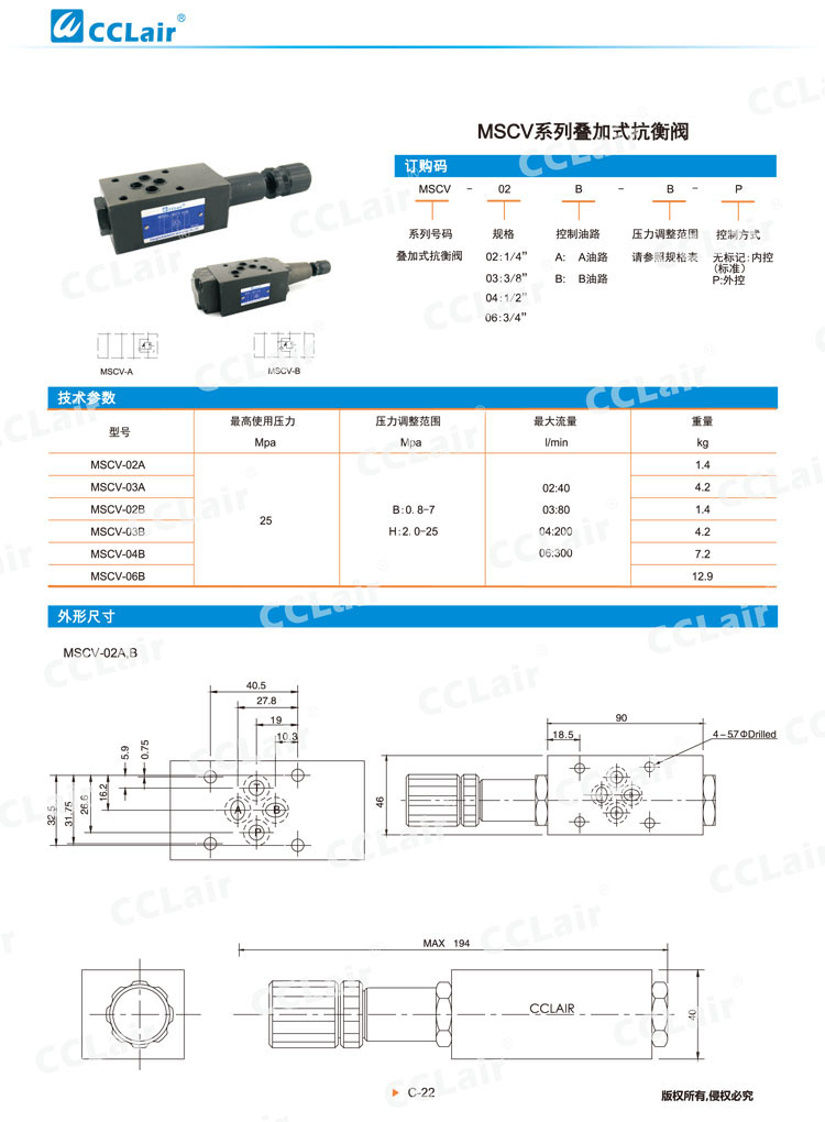 MSCV-02A,MSCV-03A,MSCV-02B,MSCV-03B,MSCV-04B,MSCV-06B,疊加式抗衡閥