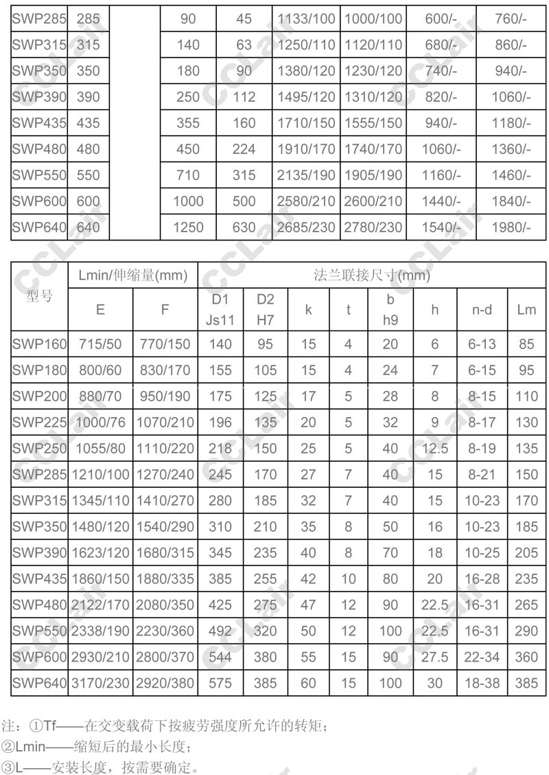 SWP160,SWP200,SWP225,SWP285,SWP315,SWP350,SWP390,SWP435,SWP550,輕載十字萬(wàn)向聯(lián)軸器