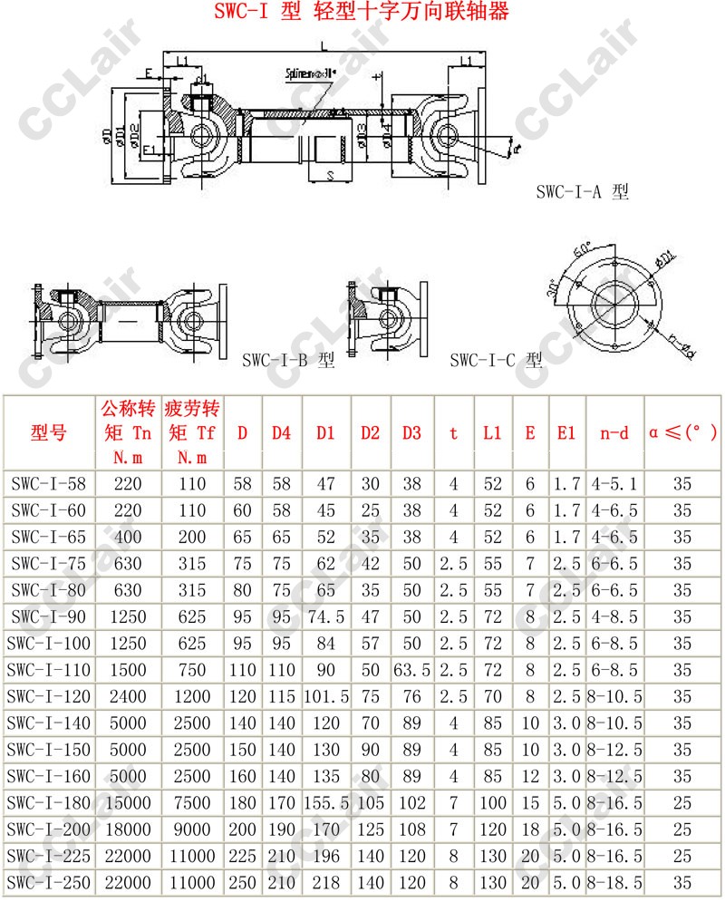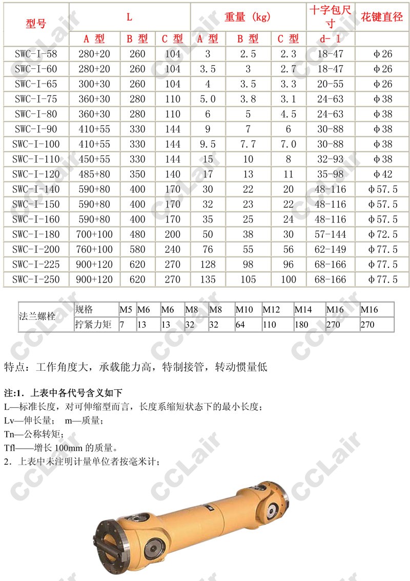 SWC-I,SWC-I-58,SWC-I-60,SWC-I-75,SWC-I-80,SWC-I-90,SWC-I-100,SWC-I-200,十字萬向聯(lián)軸器