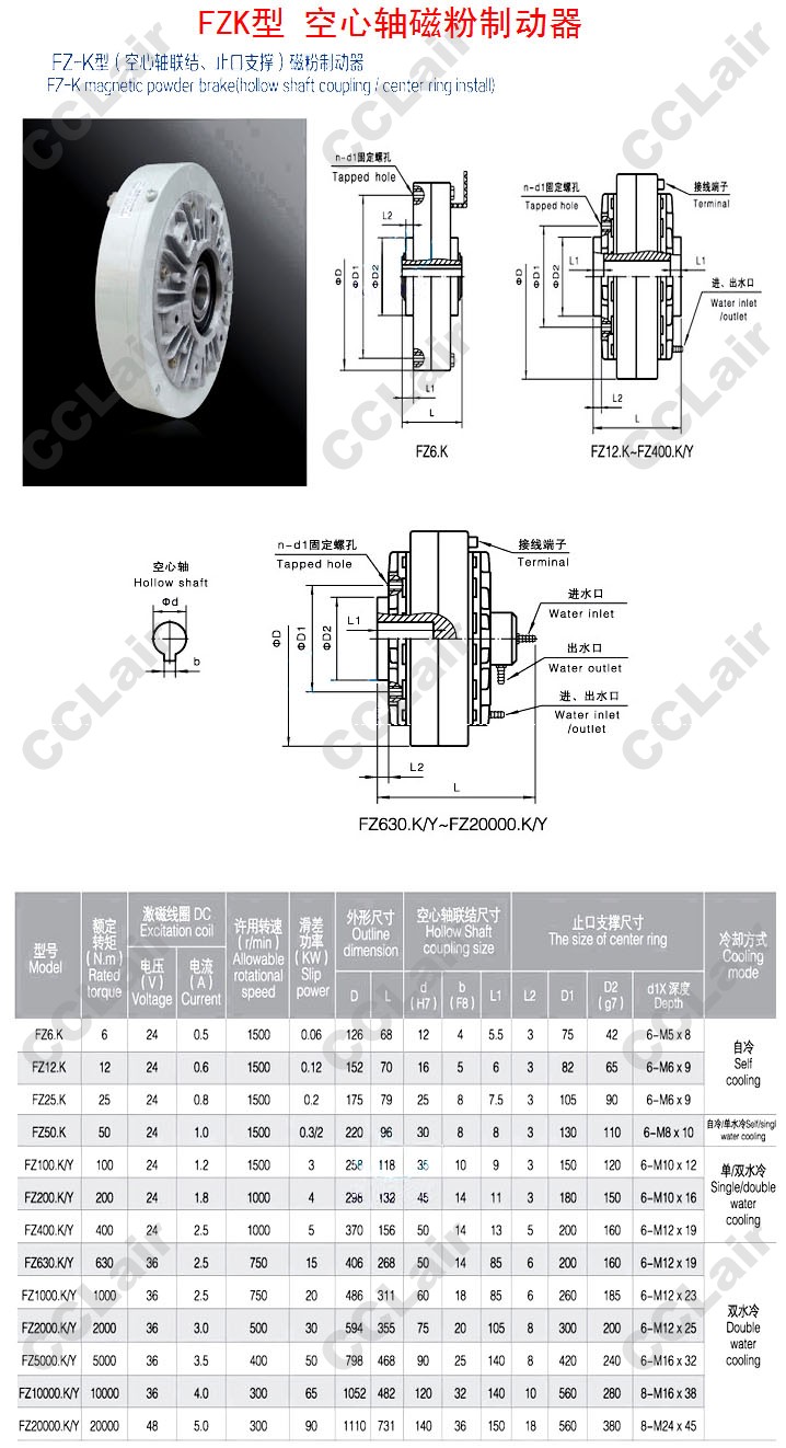 FZ6.K,FZ12.K,FZ25.K,FZ50.K,FZ100.K/Y,FZ200.K/Y,FZ400.K/Y,FZ630.K/Y,空心軸磁粉制動(dòng)器