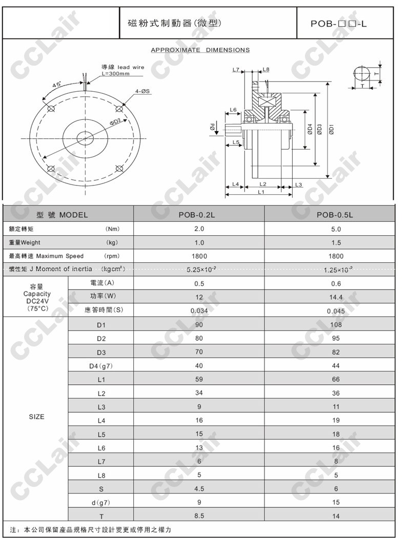 POB-0.2L,POB-0.5L,微型磁粉式制動(dòng)器