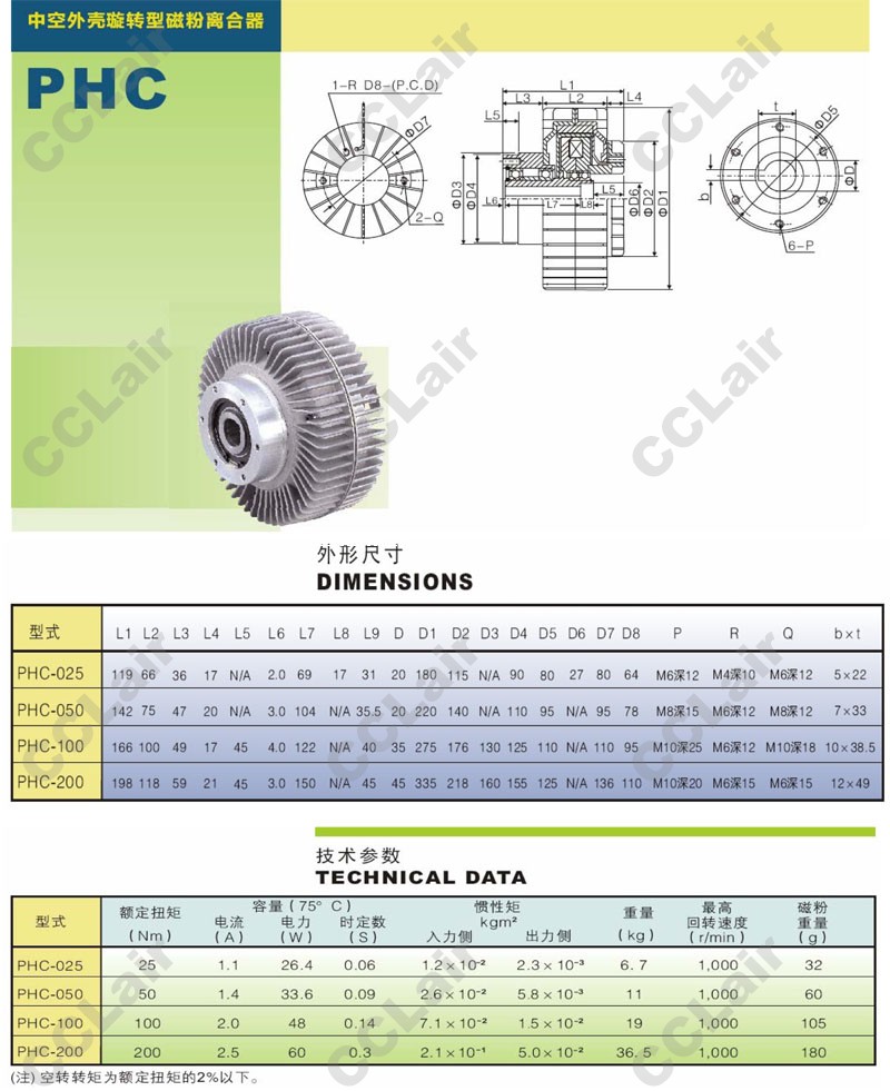 PHC-025,PHC-050,PHC-100,PHC-200,中空外殼璇轉(zhuǎn)型磁粉制動(dòng)器
