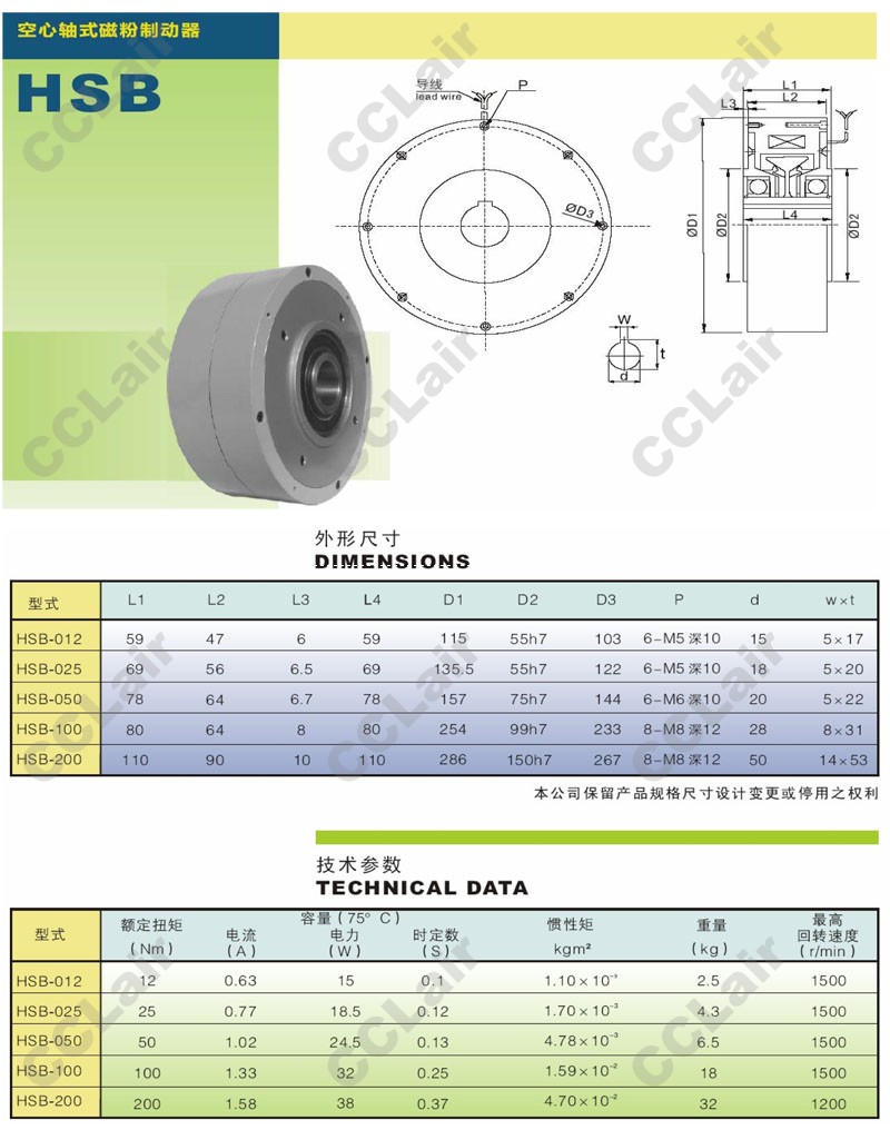 HSB-012,HSB-025,HSB-050,HSB-100,HSB-200,空心軸式磁粉制動(dòng)器