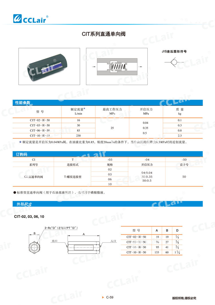 CIT-02,CIT-03,CIT-06,CIT-10,CIT-02-04-50,CIT-03-04-50,CIT-10-50-50,直通單向閥