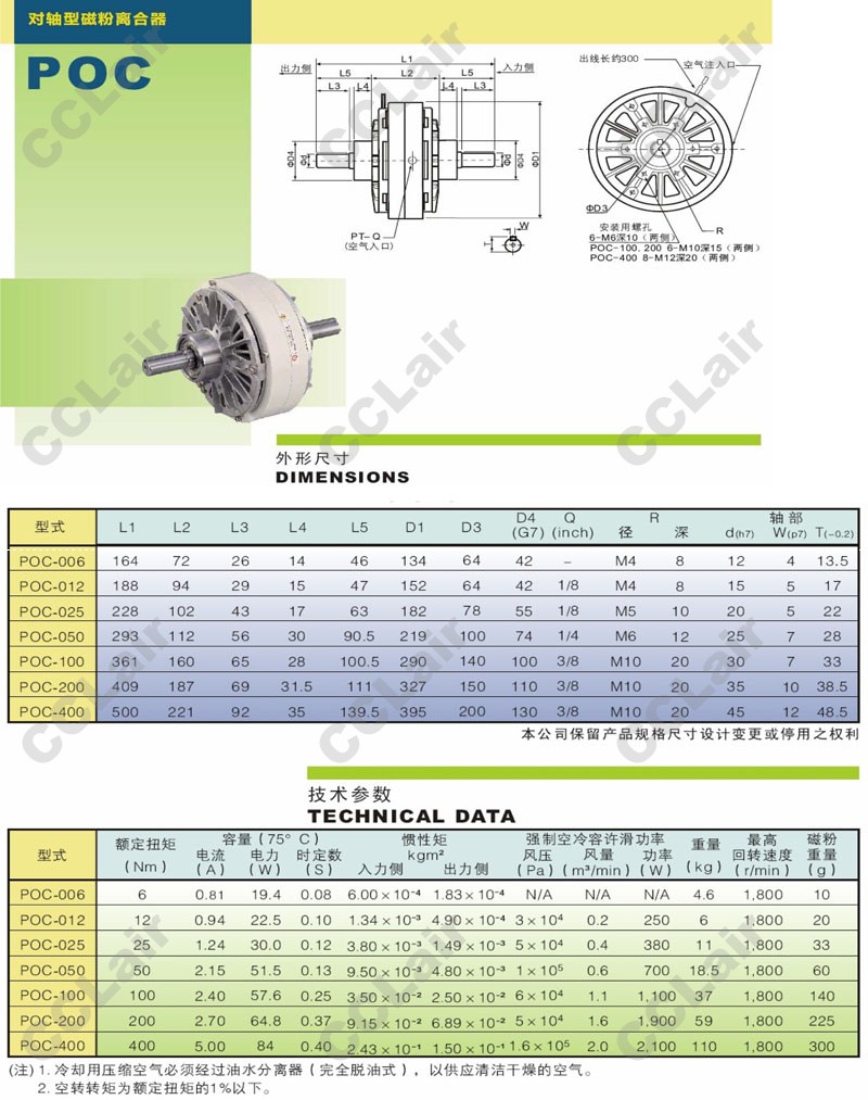POC-006,POC-012,POC-025,POC-050,POC-100,POC-200,POC-400,對(duì)軸型磁粉制動(dòng)器