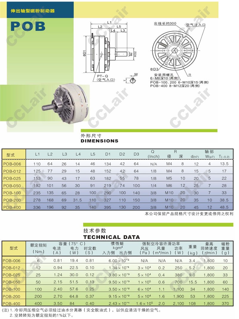 POB-006,POB-012,POB-025,POB-050,POB-100,POB-200,POB-400,伸出軸型磁粉制動(dòng)器