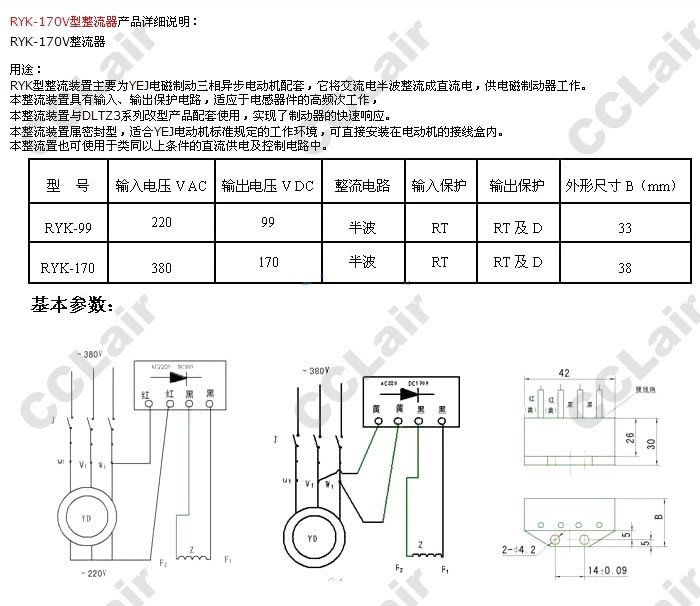 RYK-99,RYK-170,電磁剎車(chē)整流器