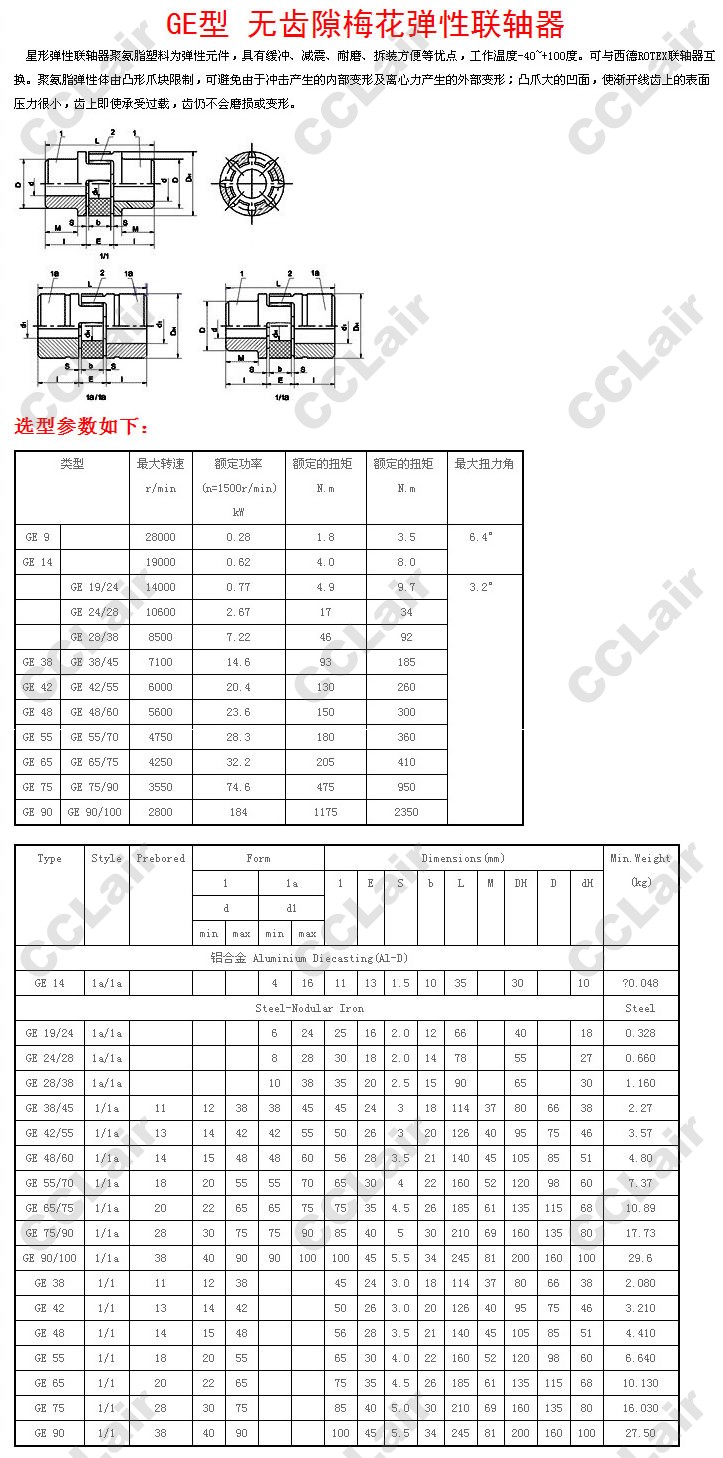 GE9,GE14,GE19/24,GE38,GE42,GE48,GE55,GE65,GE75,GE90,GE90/100,GE75/90,無齒隙梅花彈性聯(lián)軸器