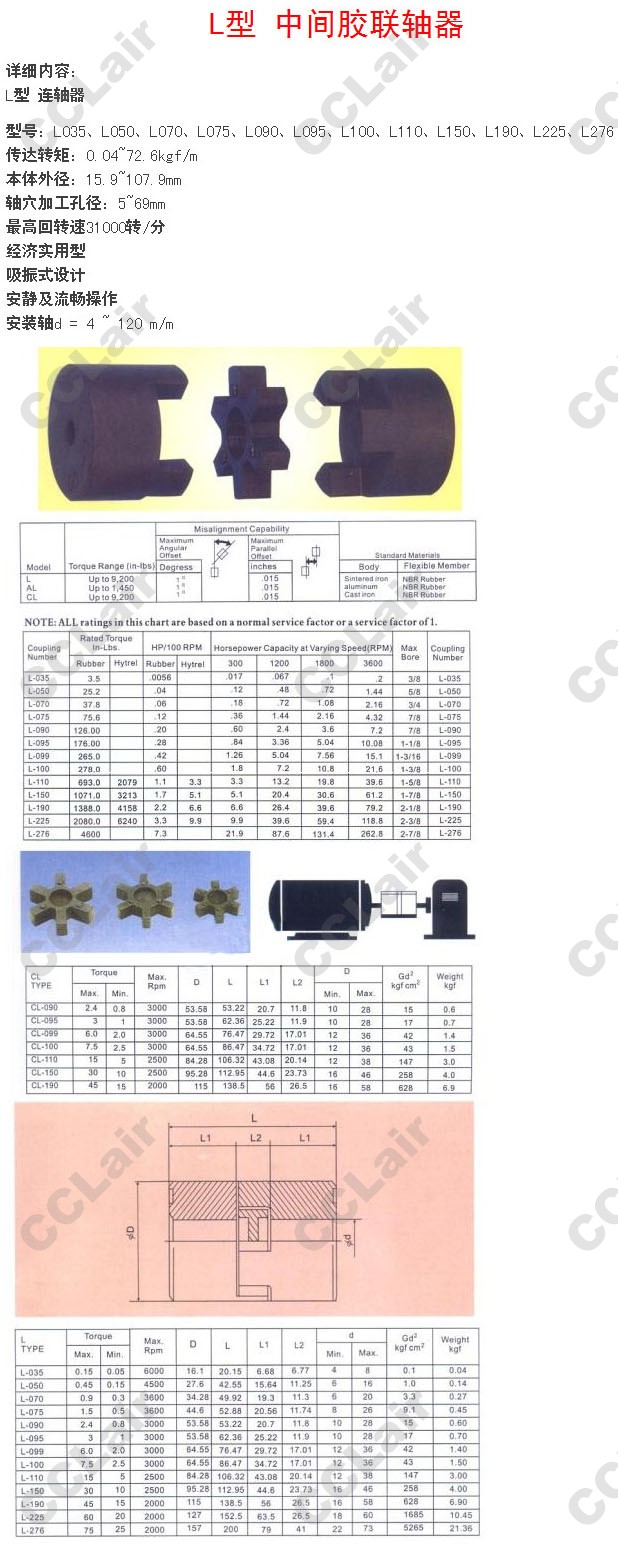 L-035,L-050,L-070,L-075,L-090,L-095,L-099,L-100,L-110,L-150,L-190,L-225,L-276,中間膠聯(lián)軸器