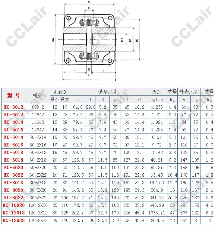 KC-3012,KC-4012,KC-4014,KC-4016,KC-5014,KC-5016,KC-5018,KC-6018,KC-6020,鏈輪鏈條聯(lián)軸器