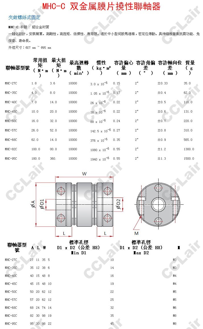 MHC-27C,MHC-35C,MHC-40C,MHC-45C,MHC-50C,MHC-57C,MHC-68C,MHC-82C,MHC-95C,雙金屬膜片撓性聯(lián)軸器