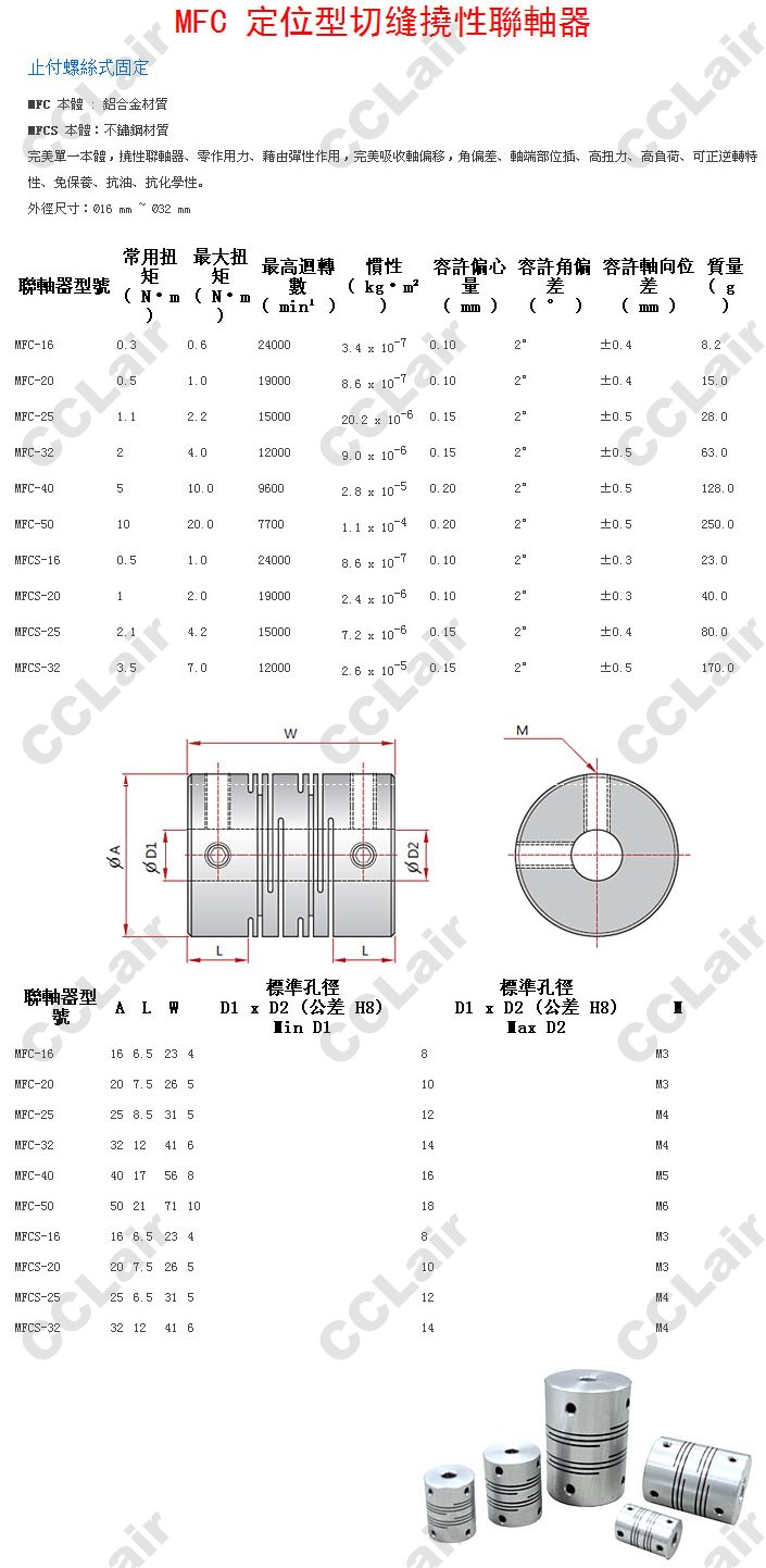 MFC-16,MFC-20,MFC-25,MFC-32,MFC-40,MFC-50,MFCS-16,MFCS-20,MFCS-25,MFCS-32,定位型切縫撓性聯(lián)軸器