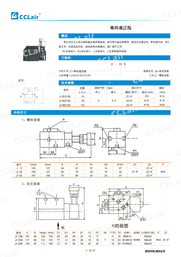 JI-B10,JI-B25,JI-B63,JI-B10B,JI-B25B,JI-B63B,單向減壓閥