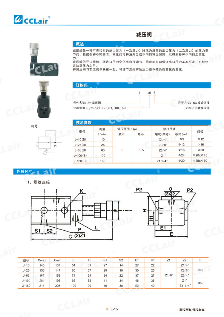 J-10,J-25,J-63,J-100,J-160,J-10B,J-25B,J-63B,J-100B,J-160B,減壓閥