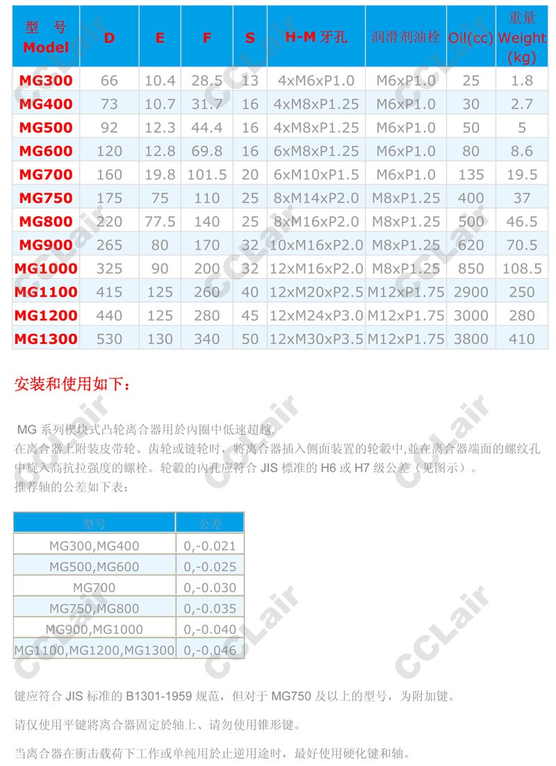 MG300,MG400,MG500,MG600,MG700,MG750,MG800,MG900,MG1000,MG1100,MG1200,MG1300,單向凸輪離合器