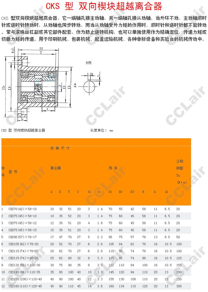 CKS70,CKS75,CKS95,CKS105,CKS115,CKS132,CKS145,CKS155,CKS160,CKS75(45)×58-15,雙向楔塊超越離合器