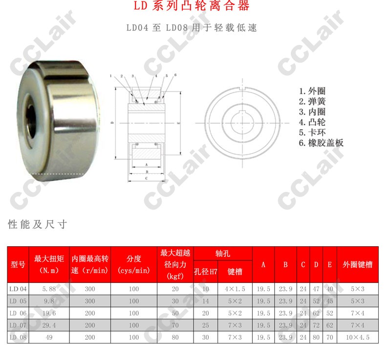 LD04,LD05,LD06,LD07,LD08,單向凸輪超越離合器
