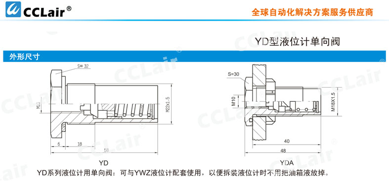 YD22*1.5,YD-M22×1.5,液位單向閥