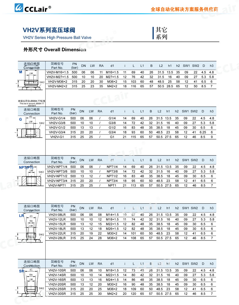 VH2V-PT1/4,VH2V-PT3/8,VH2V-PT1/2,VH2V-PT3/4,VH2V-PT1,