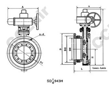 二、SD943H/F/X-6/10/16系列電動伸縮蝶閥連接尺寸: