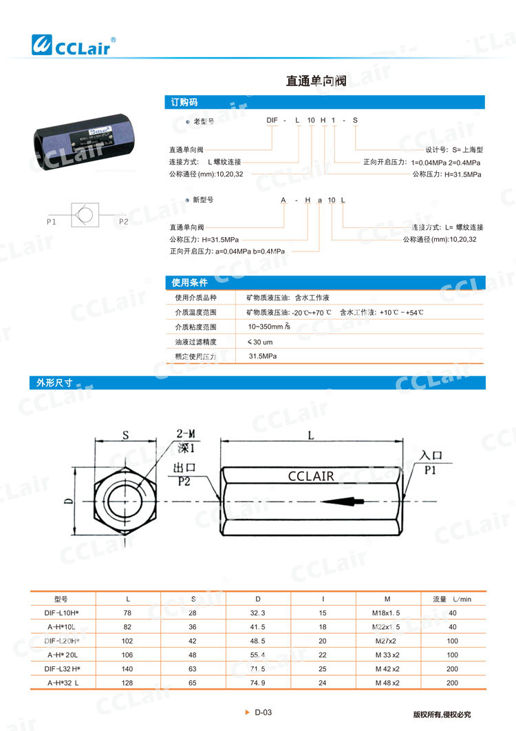 DIF-L10H1-S,DIF-L20H1-S,DIF-L32H1-S,DIF-L10H2-S,DIF-L20H2-S,DIF-L32H2-S,直通單向閥