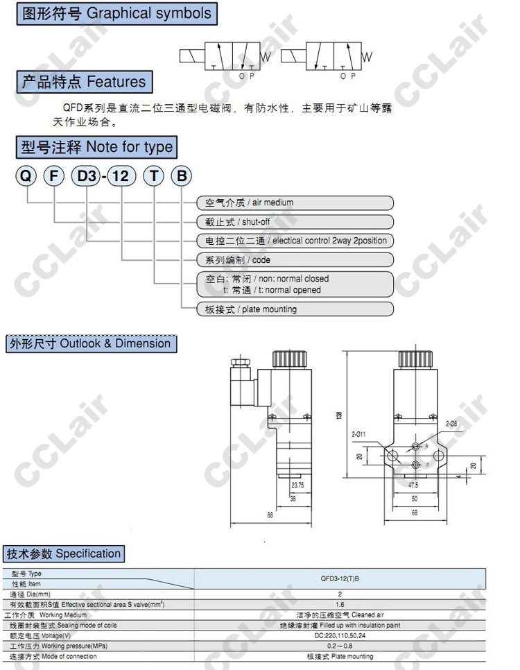 QFD3-12TB,QFD3-12B,直流二位三通型電磁閥