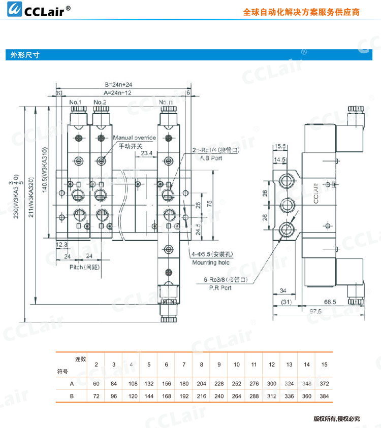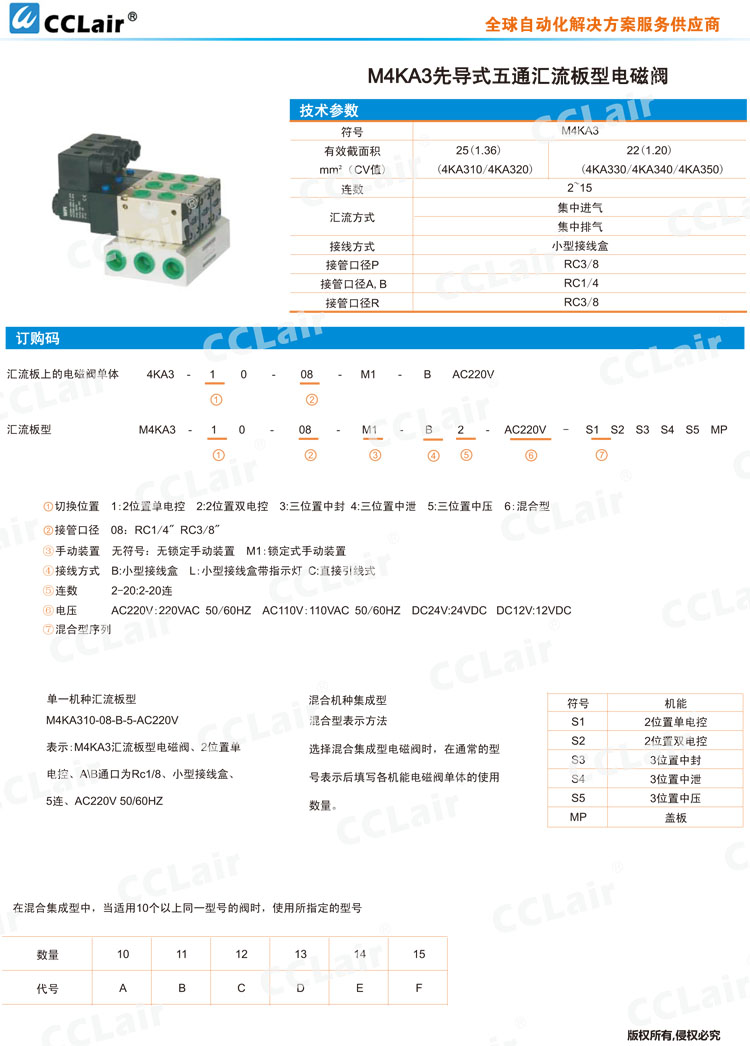 M4KA310-08,M4KA320-08,M4KA330-08,M4KA340-08,M4KA350-08,先導式五通匯流板型電磁閥