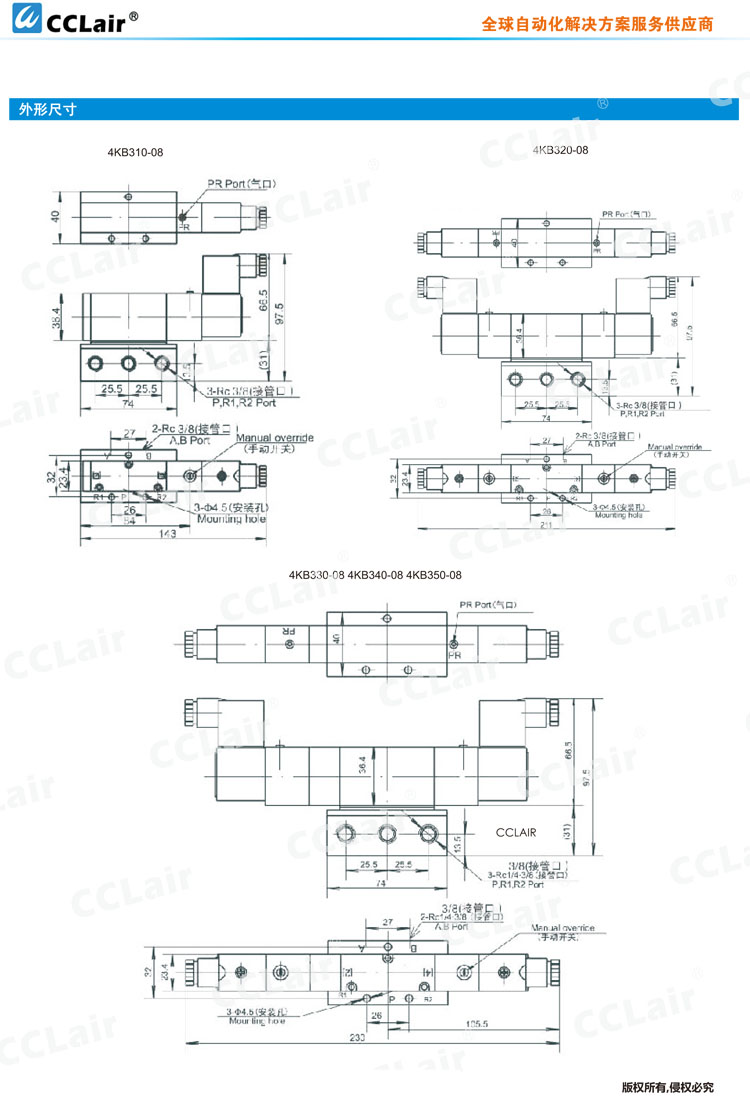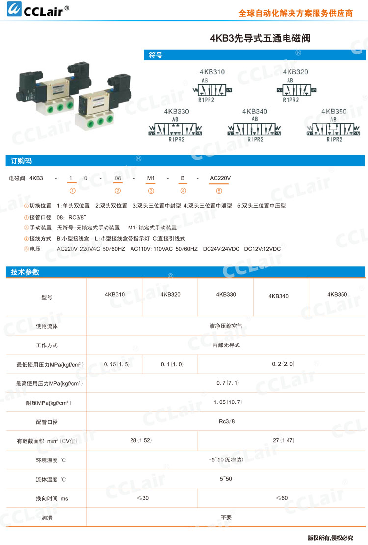 4KB310-08,4KB320-08,4KB330-08,4KB340-08,4KB350-08,先導(dǎo)式五通電磁閥