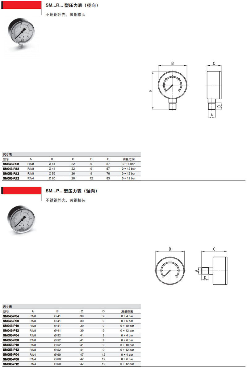 SM043-R08,SM043-P06,SM063-P12,SM043-F12,SM053-P06,camozzi壓力表