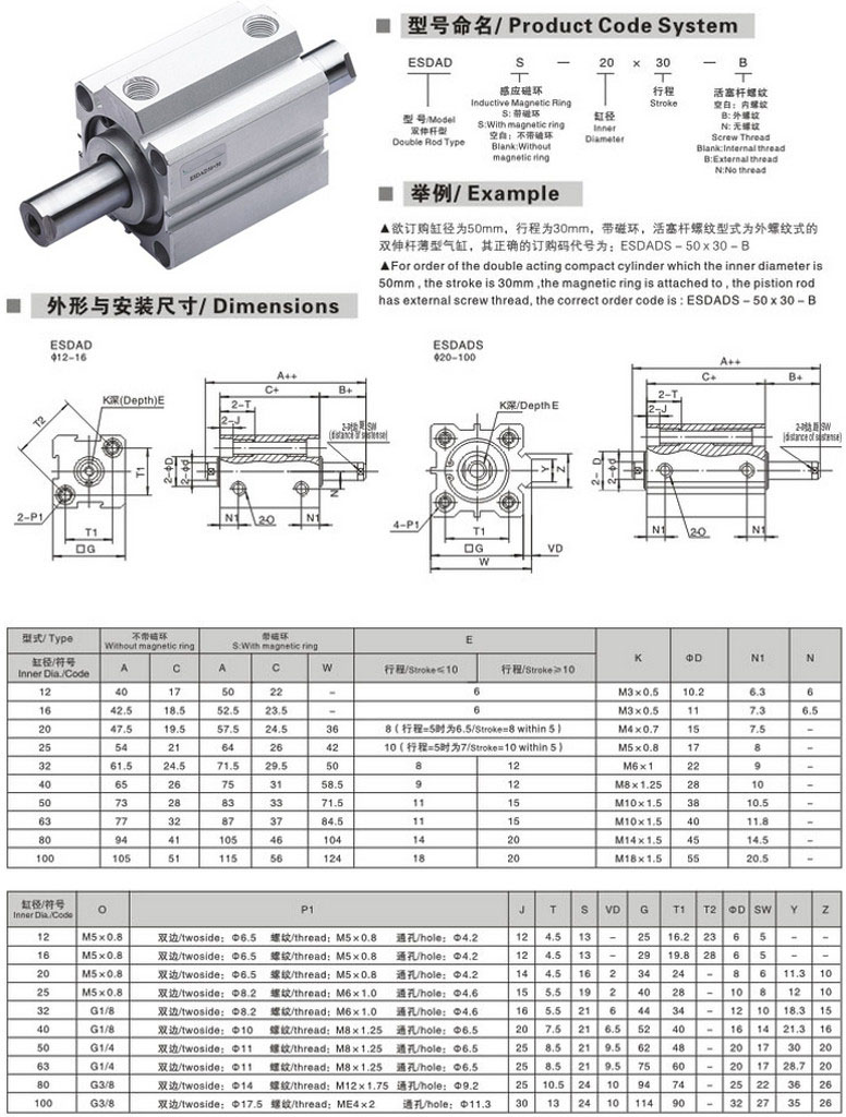 ESDAD-40*30-B,ESDAD-63*30-B,ESDAD-80*30-B,ESDAD-100*30-B,