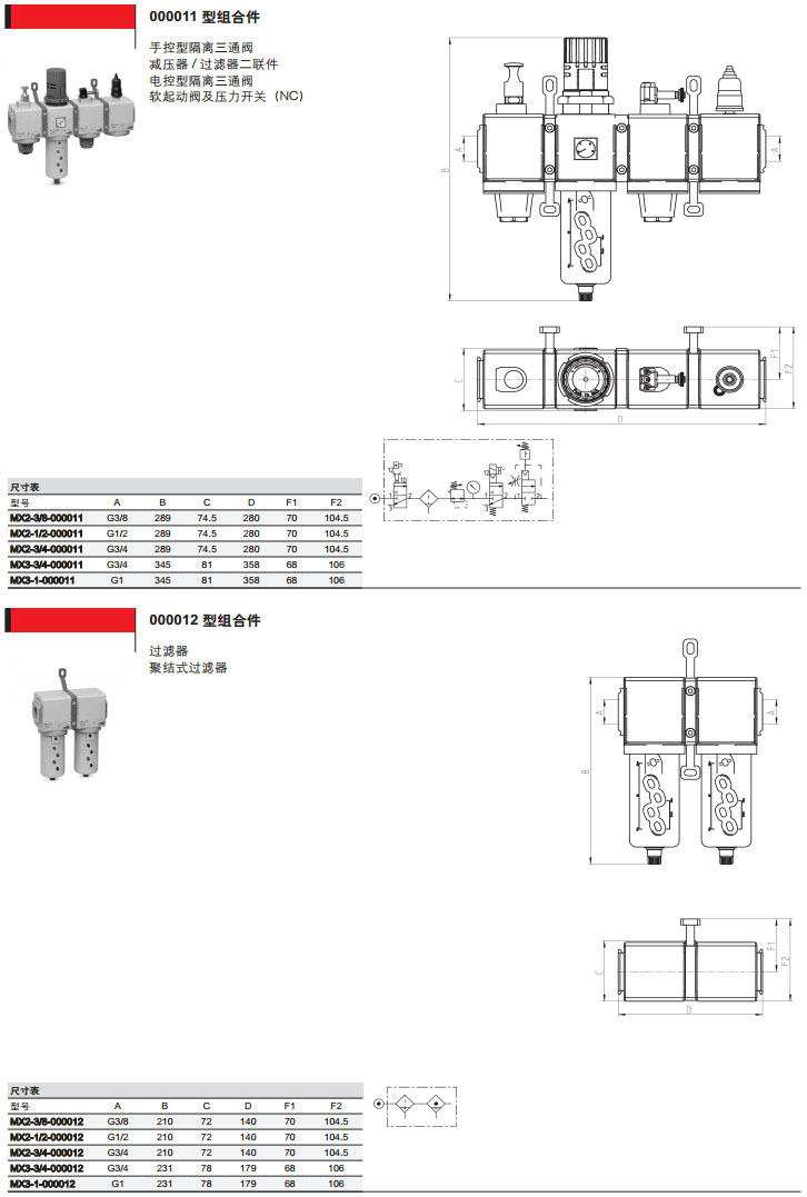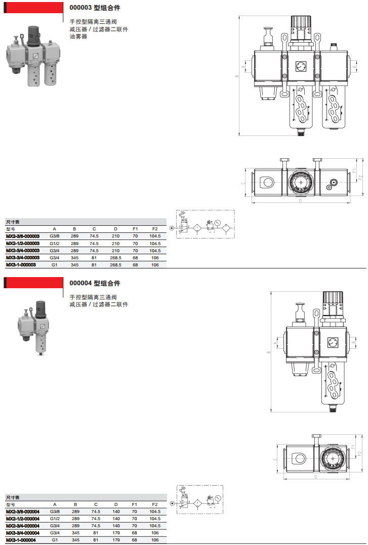 MX2-3/8-000001,MX3-1/2-000003,MX2-3/4-000010camozzi氣源處理裝置組合件
