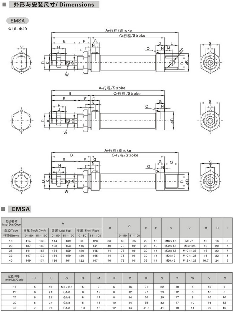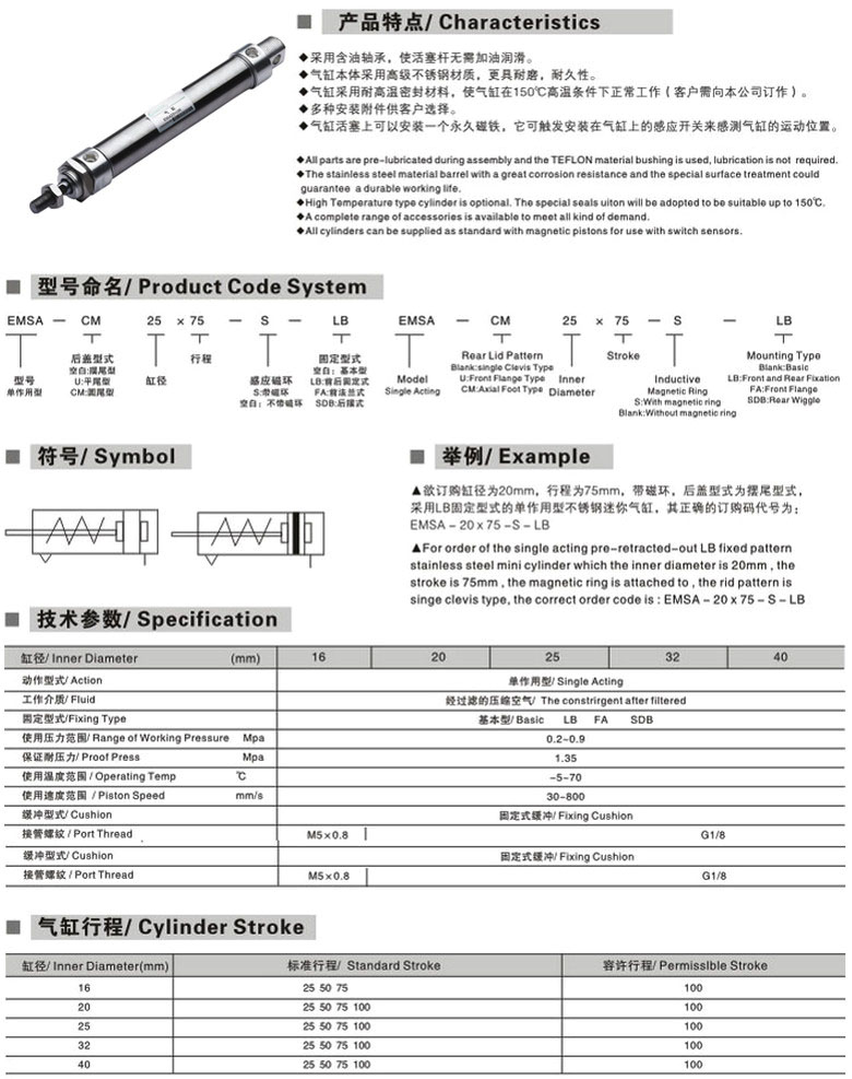 EMSA-CM16*25,EMSA-CM20*50,EMSA-CM25*75,EMSA-U32*100,EMSA-U40*25,不銹鋼迷你氣缸 |