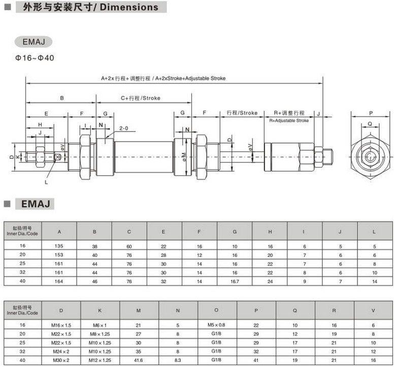EMAJ-16*25-25,EMAJ-25*50-25,EMAJ-32*75-25,EMAJ-40*80-25,不銹鋼迷你氣缸 |