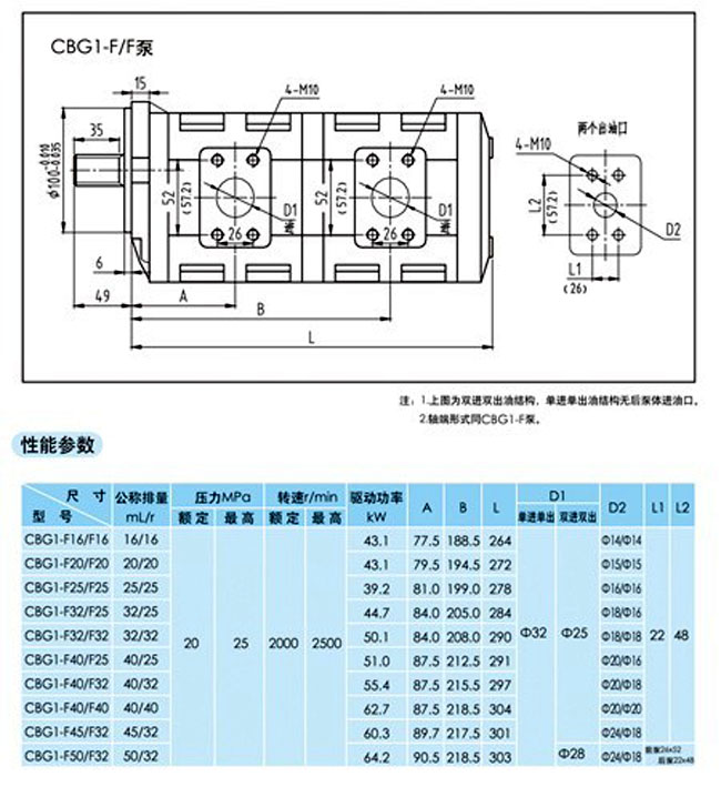 CBG1-F16/16,CBG1-F20/20,CBG1-F25/25,CBG1-F32/25,CBG1-F40/25,CBG1-F45/32,CBG1-F50/32,雙聯(lián)高壓齒輪泵