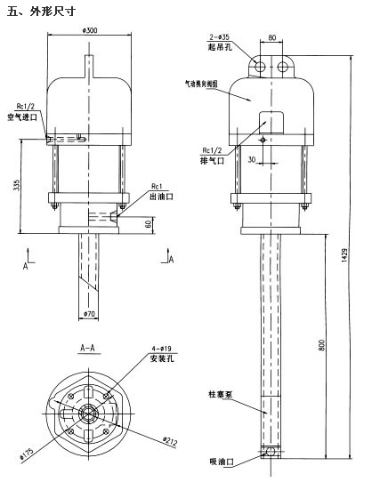 四、訂貨說明 根據(jù)用戶使用工況特殊需要,還可進(jìn)行縮短或加長(zhǎng)泵管長(zhǎng)度以及吸油口采用法蘭連接的非標(biāo)設(shè)計(jì)供貨,訂貨時(shí)另行注明。