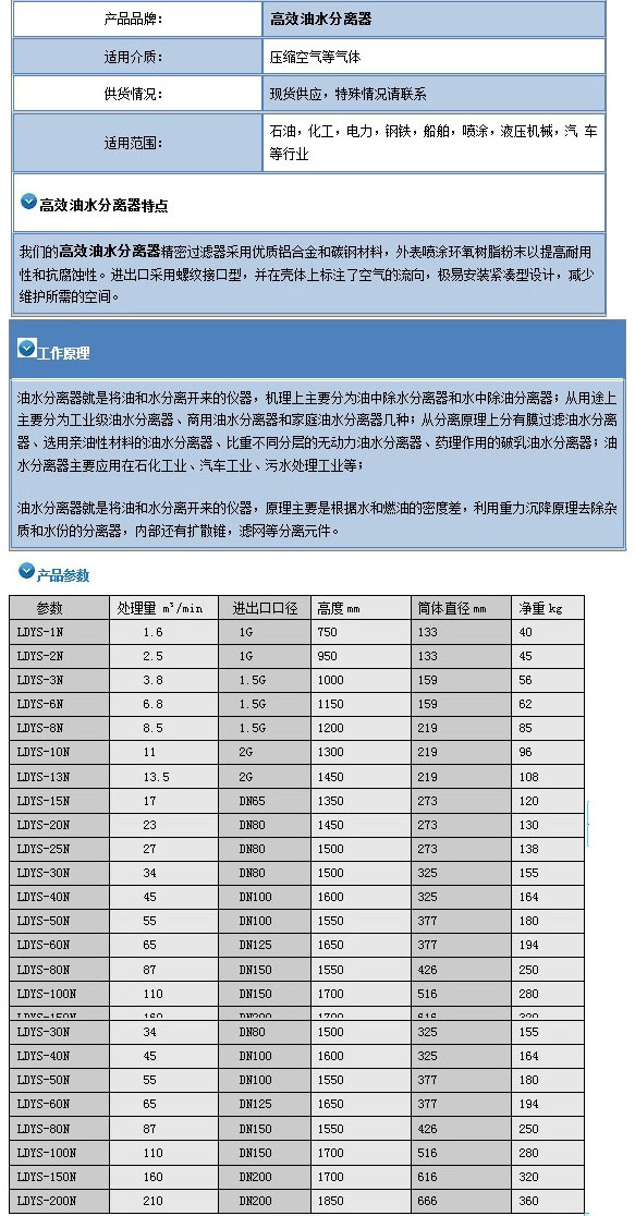 LDYS-1N,LDYS-2N,LDYS-3N,LDYS-6N,LDYS-8N,LDYS-10N,LDYS-13N,LDYS-15N,LDYS-20N,油水分離器