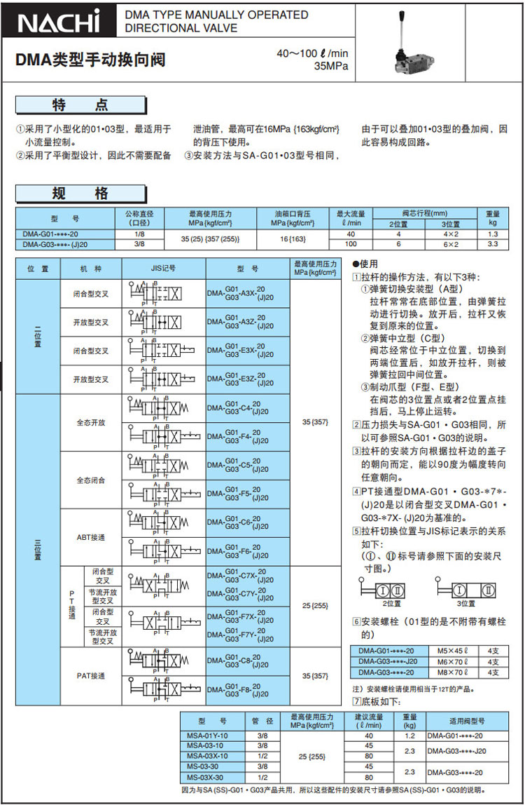 DMA-G01,DMA-G03,DMA-G01-E3X-20,DMA-G03-A3X-J20,DMA-G03-C6-20,NACHI手動(dòng)換向閥