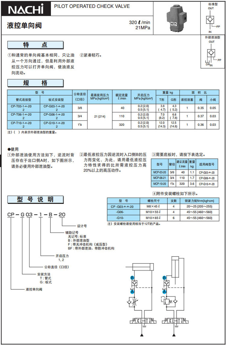CP-T03,CP-T06,CP-T10,CP-G03,CP-G06,CP-G10,CP-G10-2-F-20,NACHI液控單向閥