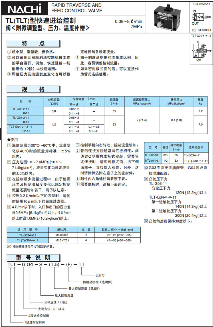 TL-G03-2-11,TL-G03-8-11,TL-G04-2-11,TLT-G04-8-2-11,TLT-G04-2-1.5-11,TL-G04-8-11,NACHI進(jìn)給控制閥