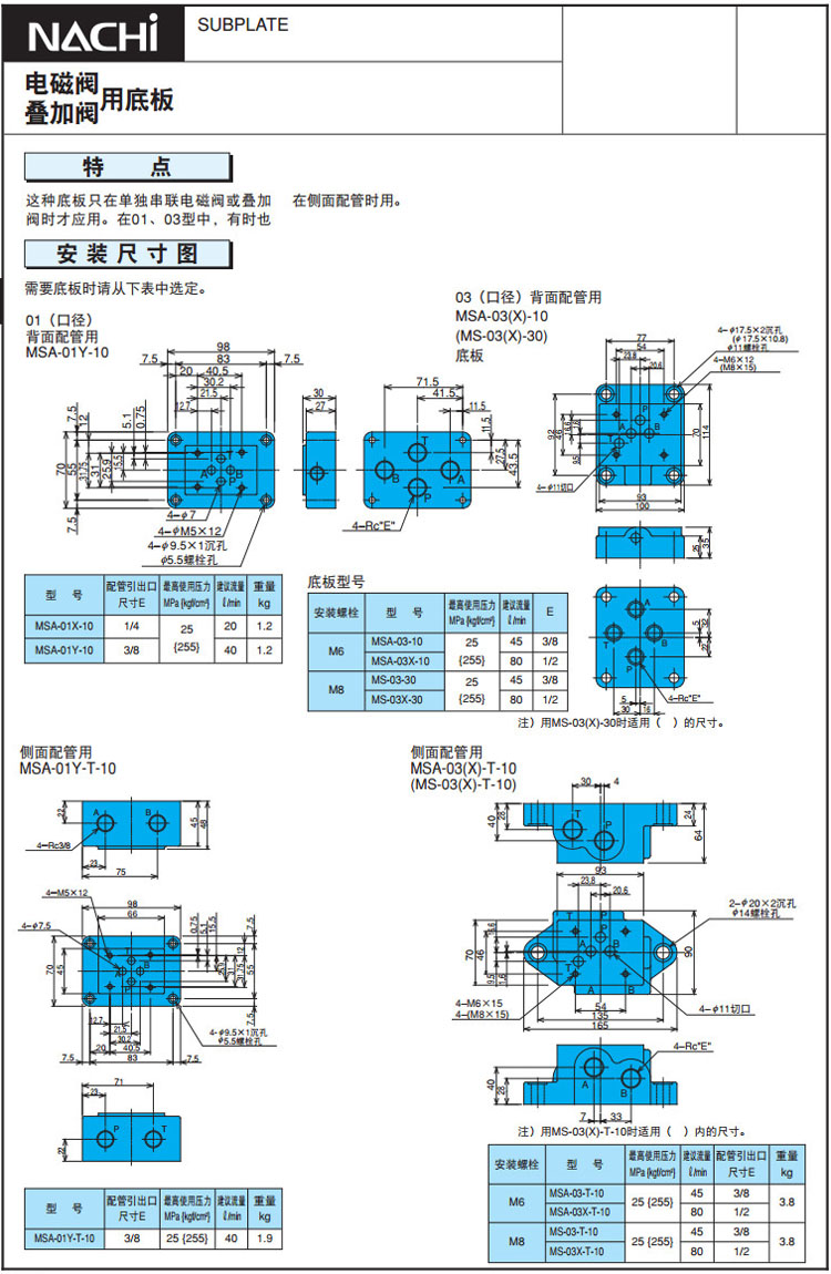 MSA-01,MSA-03,MS-03,MDS-04,MDS-06,MSA-01X-10,MSA-01Y-T-10,NACHI閥用底板