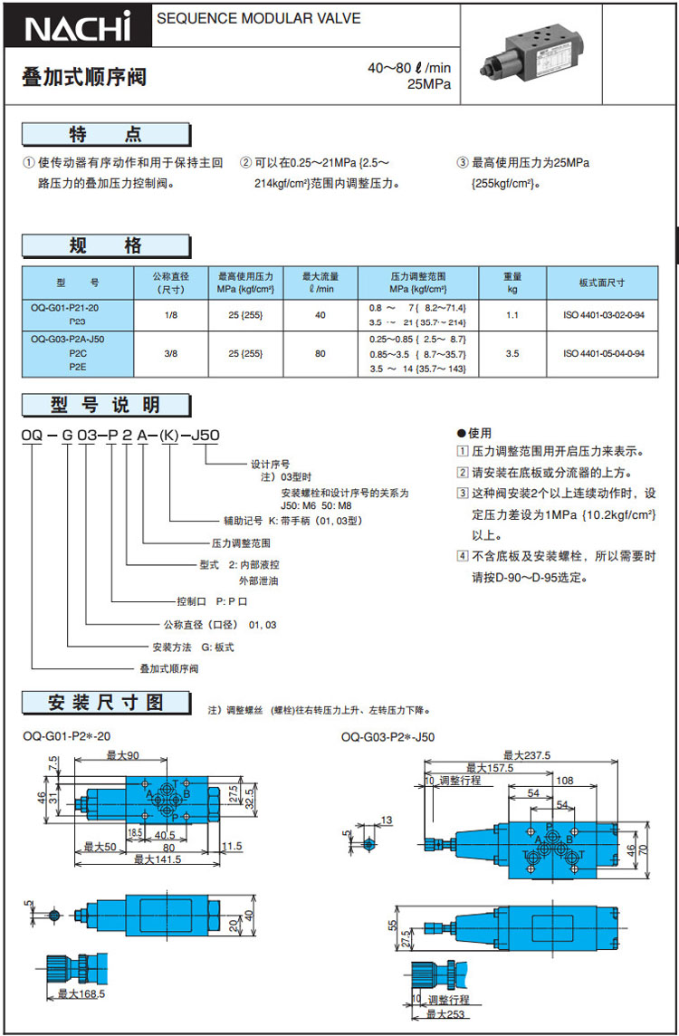 OQ-G03-P21-20,OQ-G03-P23-20,OQ-G03-P2A-20,OQ-G03-P2C-20,OQ-G03-P2E-20,NACHI疊加式順序閥