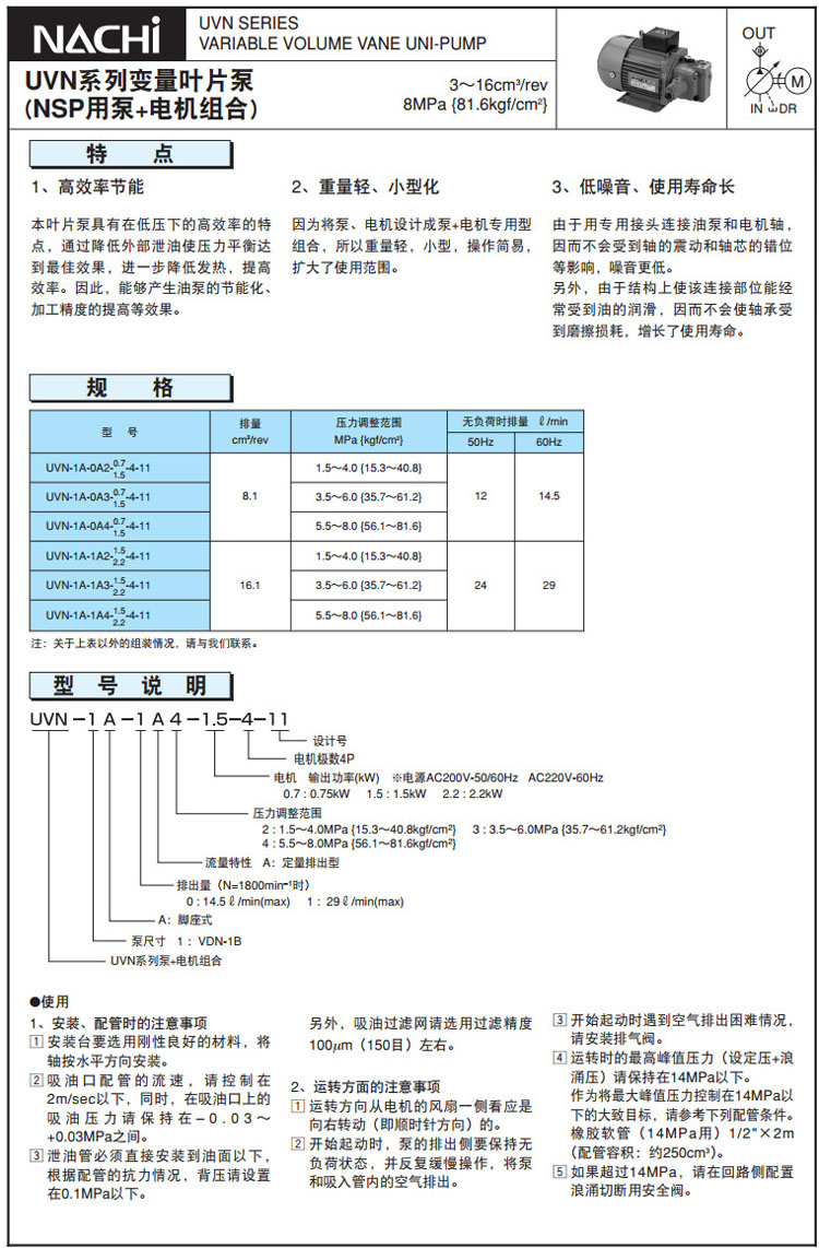UVN-1A-0A2,UVN-1A-0A3,UVN-1A-0A4,UVN-1A-1A2,UVN-1A-1A3,UVN-1A-1A4,NACHI泵+電機(jī)組合
